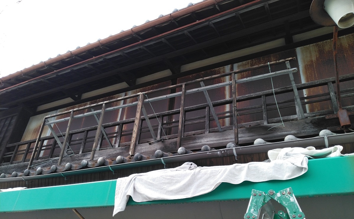 テント養生が完了したら看板本体の木枠が腐食してるので看板表示面のトタンを先に外します。