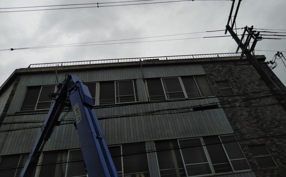 2日目に高所作業車使用して残りの看板表示面を外します。