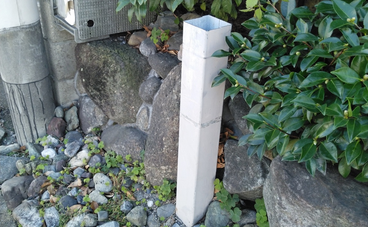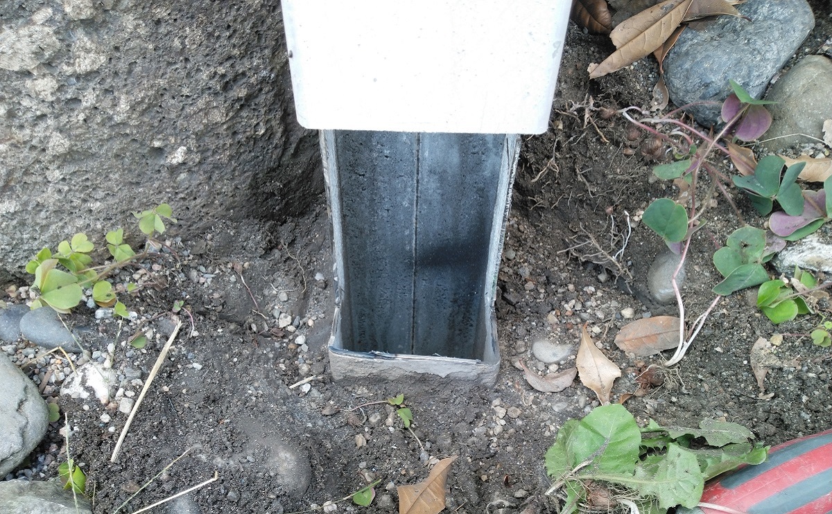 支柱を地面付近で切断して支柱の穴をモルタルで埋めて
