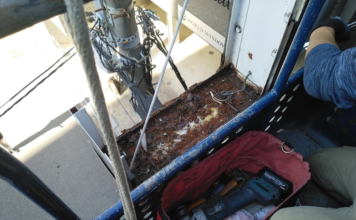 今回の看板は下部が腐食してた為、落ちた錆を最後に掃除すれば